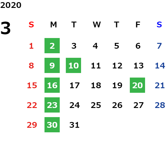 月曜・祝日