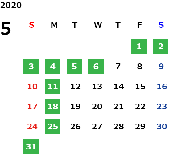 GW休業のお知らせ