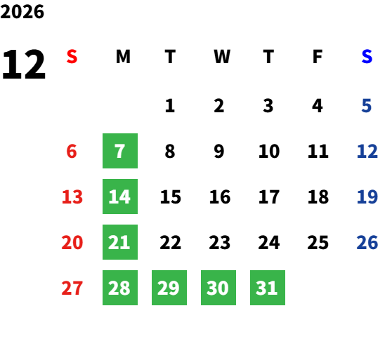 年末年始休業のお知らせ