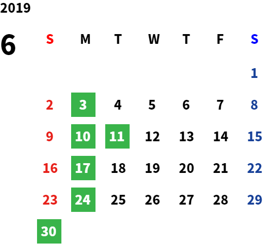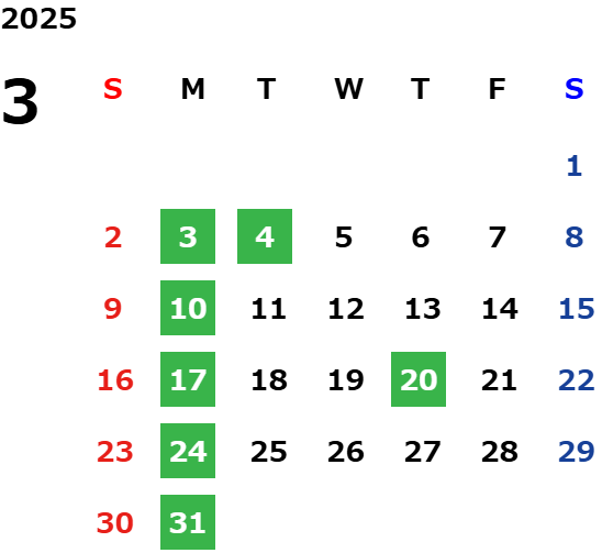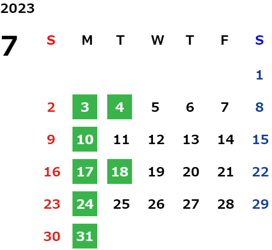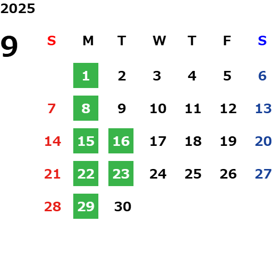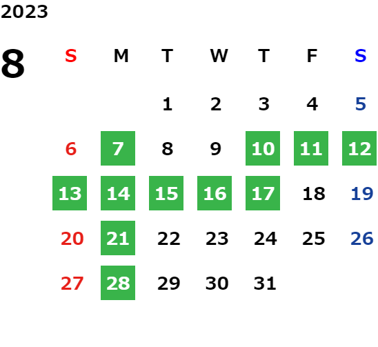 営業日カレンダー
